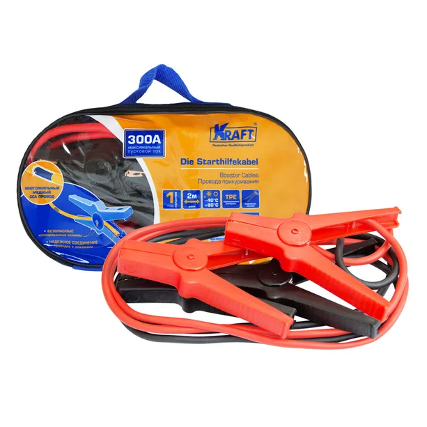 Провода прикуривания 300А (2 м), изоляция TPE, зажимы омедненный сплав + пластик, в сумке